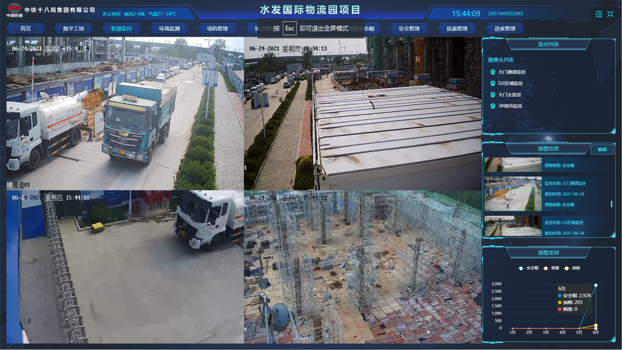 视频监控装置犹如“电子眼”,全过程、多方位地对施工进展进行实时监控,对于作业人员而言,也无形之中增加了制约力度,规范了行为,提高了安全意识。通过平台接入项目视频监控,利用平台的视频算法对视频内容进行分析,对监控视频实施增值管理,自动识别安全帽、吸烟和明火烟雾,并形成相应事件和告警的监控方式。